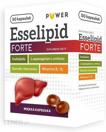 Esselipid Forte to suplement diety zawierający fosfolipidy pochodzące z nasion soi w tym cholinę. Cholina charakteryzuje się udowodnionym wpływem, który ma znaczenie dla prawidłowego funkcjonowania wątroby oraz przyczynia się do utrzymania prawidłowego metabolizmu homocysteiny. Cholina pomaga zachować zdrowie wątroby oraz utrzymać prawidłowy metabolizm tłuszczów – zwłaszcza w wątrobie.ZastosowanieSuplement uzupełnia dietę w składniki wspierające prawidłowe funkcjonowanie wątroby i układu pokarmowego.Składnikilecytyna sojowa zawierająca 65% fosfolipidów i 1,5% choliny, żelatyna wołowa, substancja utrzymująca wilgoć: glicerol, woda, ekstrakt z liści karczocha (cynara scolymus L.) zawierający 5% cynaryny DER 6:1, olej kokosowy całkowicie uwodorniony, L-asparginian L-ornityny, barwnik: tlenki i wodorotlenki żelaza, emulgator: wosk pszczeli, chlorowodorek pirydoksyny (witamina B6), ryboflawina, emulgator: dwutlenek krzemu1 kapsułka zawiera:fosfolipidy z nasion soi 600mg, w tym:- cholina 14 mg.Ekstrakt z karczocha 50 mg, w tym:- cynaryna 2,5 mg.L-asparginian L-ornityny: 20 mgWyboflawina (witamina B6): 2,8 mg 200%**RWS – Referencyjna Wartość SpożyciaZalecane spożycie1 kapsułka 2 razy dziennie w czasie posiłku.