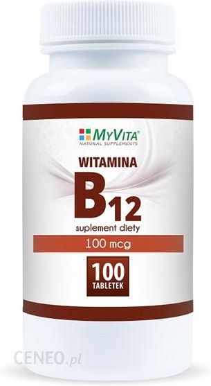 Suplement dietySuplement diety- witamina B12 100mcg.Zastosowanie: suplementacja diety w witaminę B12.Zalecane spożycie: 1 tabletka dziennie, popić wodą. Spożywać w trakcie posiłków.Składniki: substancja wypełniając: celuloza i wodorofosforan wapnia, substancja przeciwzbrylająca: sole magnezowe kwasów tłuszczowych, witamina B12 (cyjanokobalamina).1 tabletka zawiera: witamina B12 100mcg (4000%)*.*RWS- Referencyjna Wartość Spożycia.Przeciwwskazania: nie zaleca się kobietom w ciąży, karmiącym oraz dzieciom.Ważne wskazówki:Przechowywać w suchym miejscu, w temperaturze pokojowej, w sposób niedostępny dla małych dzieci.Nie należy przekraczać zalecanej dziennej porcji.Zrównoważony sposób żywienia i prawidłowy tryb życia jest ważny dla prawidłowego funkcjonowania organizmu człowieka.Suplement diety nie może być stosowany jako substytut (zamiennik) zróżnicowanej diety.Producent:Pronessul. Nowodworska 1759-220 Legnica