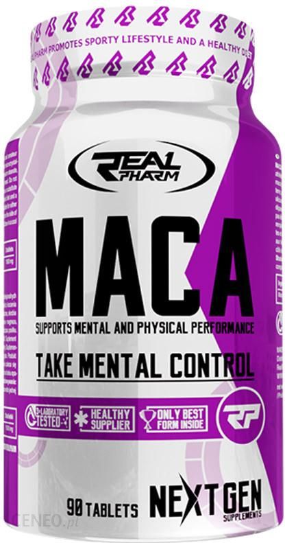 Real Pharm Maca to najnowszy preparat renomowanego producenta, którego działanie opiera się o wysokiej jakości sproszkowany korzeń rośliny Maca. Ta pochodząca z Peru roślina zwana jest także skarbem Inków. Od setek lat wykorzystywana jest przez ludność zamieszkującą Amerykę Południową. Preparat ten zwiększa witalność i wytrzymałość organizmu, a także dodaje energii. Bardzo często wykorzystywany jest także do łagodzenia zaburzeń hormonalnych wynikających z naturalnego cyklu organizmu jak np. menopauza. Real Pharm Maca można stosować także w stanach przewlekłego zmęczenia. Dodatkowym efektem działania jest poprawa koncentracji i pamięci.Działanie produktuRoślina Maca jest źródłem znakomitego białka roślinnego, a także mnóstwa witamin (C, B2, PP, B6) i minerałów (wapń, magnez, fosfor, potas, żelazo, miedź, mangan). Dodatkowo, w ekstrakcie znajdują się także substancje bioaktywne o prozdrowotnych właściwościach.Regularne stosowanie produktu:dodaje energiipodnosi wydolność organizmupoprawia nastrój i pomaga zwalczać strespoprawia płodność u kobiet i mężczyznwspiera odporność organizmułagodzi skutki zmian w organizmie (jak np. w trakcie menopauzy)poprawia pamieć i koncentracjęwspiera układ kostny i krwionośnywpływa pozytywnie na jakość widzeniaZastosowanieProdukt polecany jest osobom, które:Uprawiają sport i pracują fizycznie lub umysłowo. Świetnie sprawdza się także wśród studentów. Z powodzeniem mogą z niego korzystać także osoby starsze.Czują się przemęczone i wyczerpane. Warto sięgnąć po produkt w okresach rekonwalescencji i dochodzenia do zdrowia. Korzyści ze stosowania produktu dostrzeże także młodzież w okresie dorastania i dojrzewania.Ekstrakt z rośliny maca jest produktem w pełni bezpiecznym. Nie odnotowano dotychczas żadnych efektów ubocznych wynikających ze stosowania preparatu. Nie należy jednak przekraczać zalecanej dawki. Produkt nie powinien być także stosowany przez kobiety w ciąży i karmiące. Ze względu na to, że roślina wykazuje efekty pobudzające, należy unikać stosowania jej przed snem.Skład produktuWykaz składników aktywnych w 1 tabletceEkstrakt z korzenia Maca (Lepidium meyenii) 1000 mgPozostałe składniki: celuloza mikrokrystaliczna , skrobia ziemniaczana ; substancje przeciwzbrylające: węglan wapnia , stearynian magnezu, dwutlenek krzemu .Zalecane spożycieW opakowaniu znajduje się 90 tabletek po 1000 mgPreparat należy spożywać trzy razy dziennie, po 1 tabletce, popijając szklanką wody.Nie należy przekraczać zalecanej do spożycia porcji w ciągu dnia.