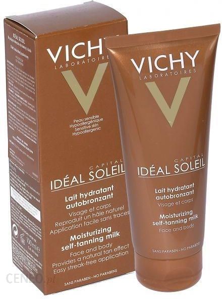 Vichy Ideal Soleil Auto bronzant to brązujące mleczko o działaniu nawilżającym przeznaczone do stosowania na ciało i twarz. Produkt jest odpowiedni do każdego rodzaju skóry, także dla skóry wrażliwej i ze skłonnością do występowania podrażnień. Kosmetyk został wyprodukowany na bazie wielonienasyconego kwasu DHA oraz witaminy E – takie połączenie składników aktywnych gwarantuje efekt naturalnej i jednolitej opalenizny.Mleczko Vichy Ideal Soleil Auto bronzant dodatkowo w swoim składzie zawiera wodę termalną, która wykazuje działanie łagodzące i kojące. Produkt odznacza się lekką, hipoalergiczną formułą i nie zawiera parabenów. Został przetestowany na skórze wrażliwej pod kontrolą lekarzy dermatologów. Kosmetyk stanowi idealny sposób na piękną opaleniznę bez konieczności eksponowania ciała na słońce.