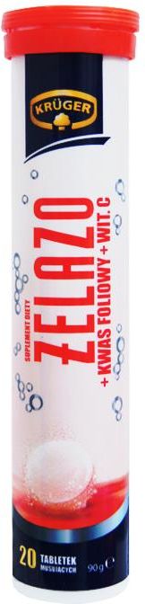 Produkt w swoim składzie zawiera nie tylko żelazo, ale także kwas foliowy oraz witaminę C. Tabletki musujące o smaku czarnej porzeczki.Żelazo – pomaga w prawidłowej produkcji krwinek i hemoglobiny. Kwas foliowy przyczynia się do zmniejszenia uczucia zmęczenia, wspomaga pracę układu odpornościowego. Witamina C – zwiększa przyswajanie żelaza.Wskazania: wspomaganie prawidłowej produkcji krwinek i hemoglobiny, zmniejszenie uczucia zmęczenia, wspomaganie odporności.Dawkowanie: zalecenia: 1 tabletka dziennie. 1 tabletkę rozpuścić w 250ml wody.Skład: 1 tabletka zawiera: żelazo 14mg, kwas foliowy 200µg, witamina C 60mg oraz substancje pomocnicze.